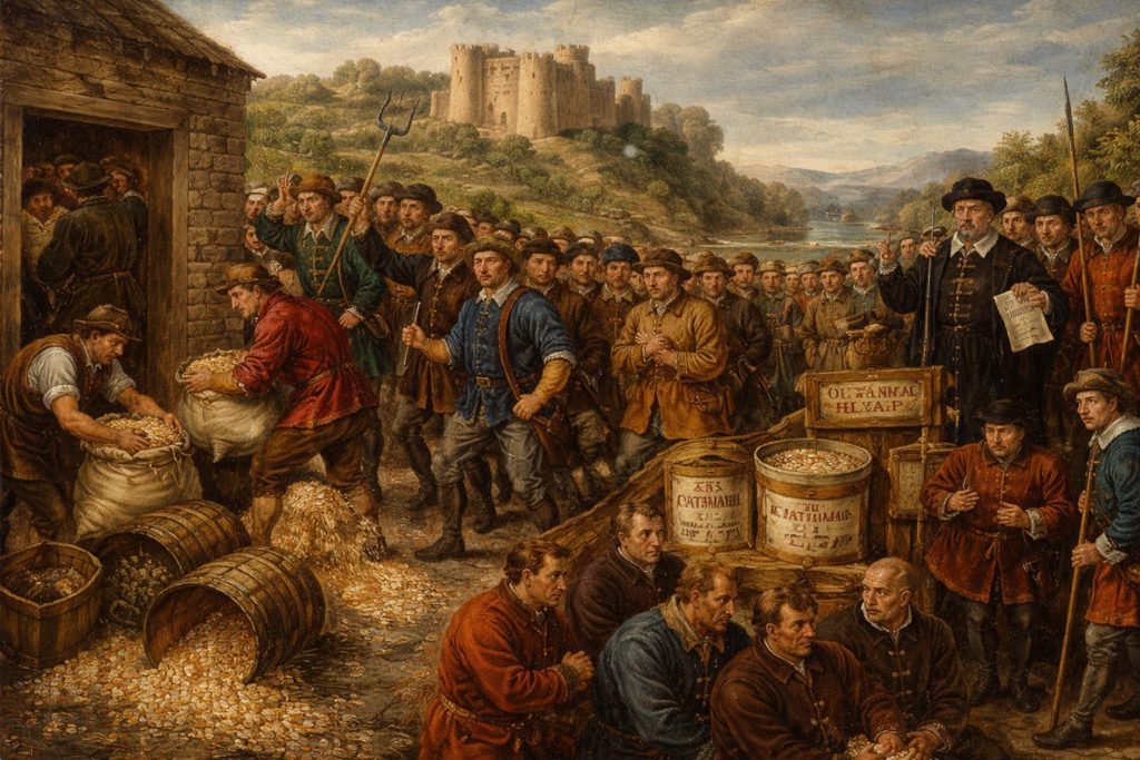 The disturbances broke out during a period of acute hardship. Britain was at war, food prices were rising sharply, and local people accused merchants and landowners of hoarding grain while ordinary families went hungry. Crowds gathered not to plunder indiscriminately, but to demand that corn be sold locally at what they called a “just price”.